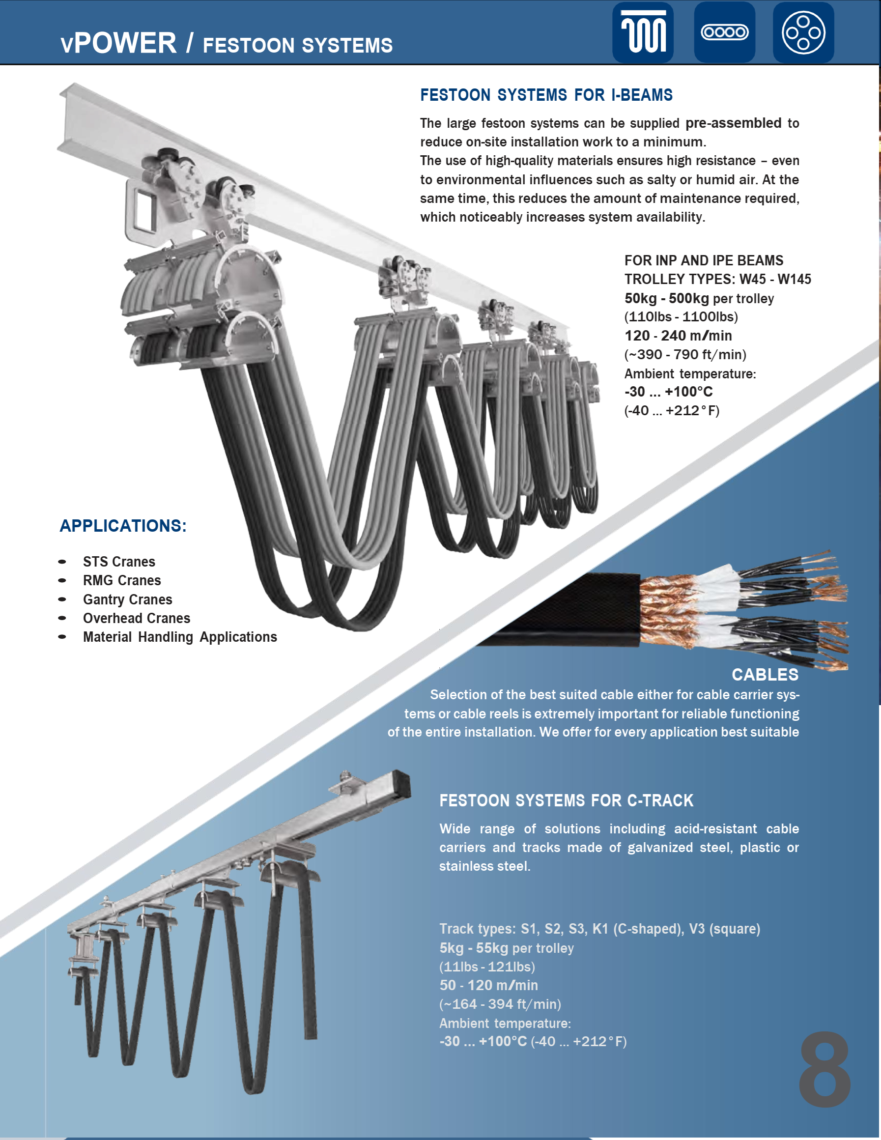 Selection of the best suited cable either for cable carrier systems or cable reels is extremely important for reliable functioning of the entire installation. We offer for every application best suitable