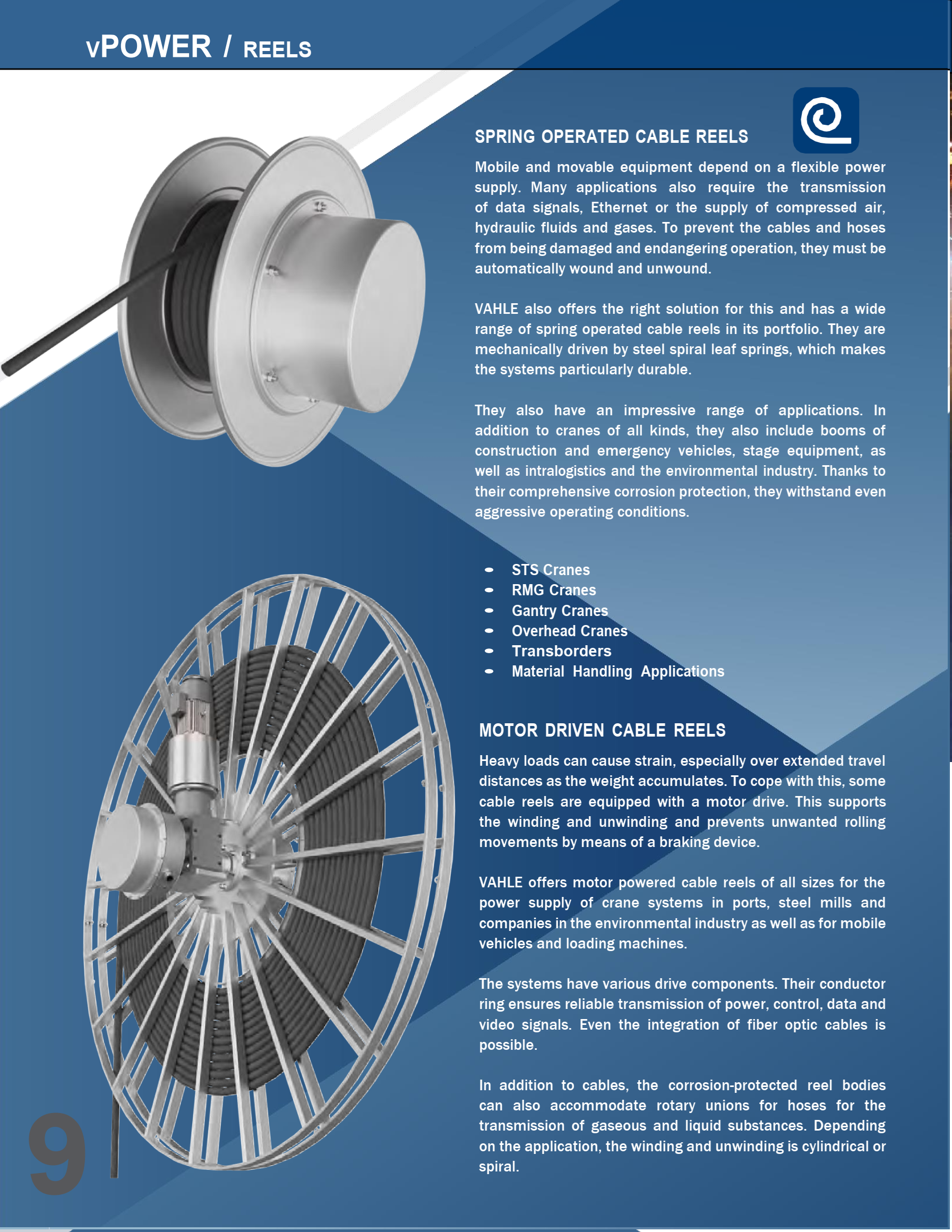 VAHLE offers motor powered cable reels of all sizes for the power supply of crane systems in ports, steel mills and companies in the environmental industry as well as for mobile vehicles and loading machines.